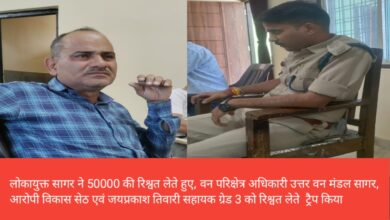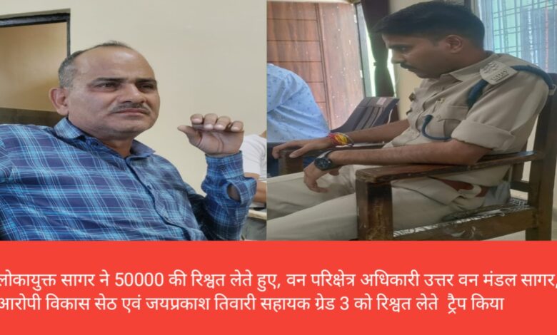 लोकायुक्त सागर ने 50000 की रिश्वत लेते हुए, वन परिक्षेत्र अधिकारी उत्तर वन मंडल सागर, आरोपी विकास सेठ एवं जयप्रकाश तिवारी सहायक ग्रेड 3 को रिश्वत लेते ट्रैप किया