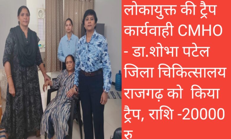लोकायुक्त की ट्रैप कार्यवाही CMHO – डा.शोभा पटेल जिला चिकित्सालय राजगढ़ को किया ट्रैप, राशि -20000 रु