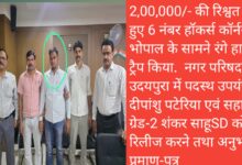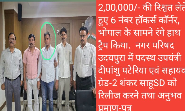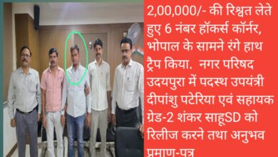 लोकायुक्त इकाई की ट्रेप कार्यवाही दर्पण मिश्रा वा संदेश गजभिये को ट्रैप राशि -14000 लेते पकड़ा