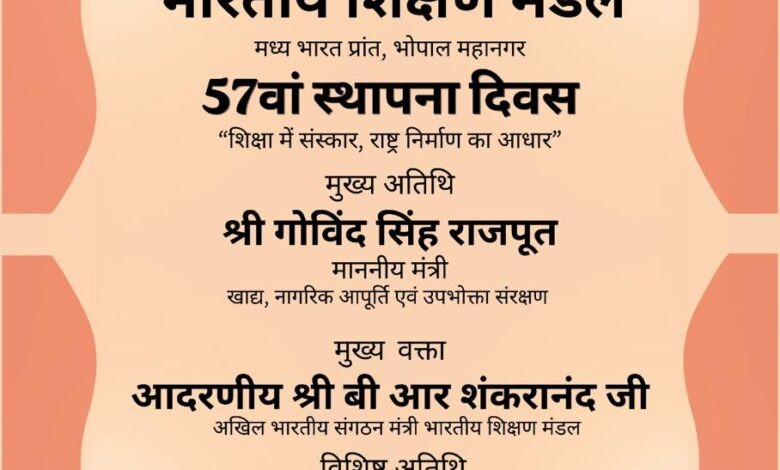 *भारतीय शिक्षण मंडल के स्थापना दिवस पर कार्यक्रम आज* भोपाल। भारतीय शिक्षण मंडल के 57वें…
