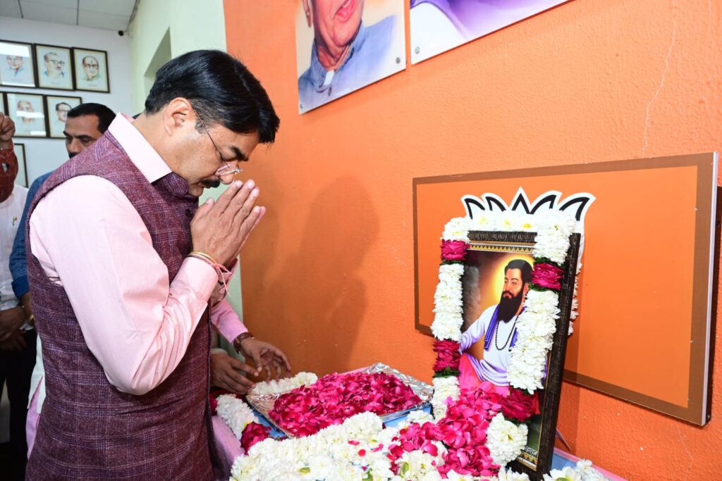 भारतीय जनता पार्टी के प्रदेश अध्यक्ष व सांसद विष्णुदत्त शर्मा ने शनिवार को प्रदेश कार्यालय में संत रविदास जी की जयंती पर उनके चित्र पर माल्यार्पण कर नमन किया। इस अवसर पर मध्यप्रदेश शासन के मंत्री श्री नरेंद्र शिवाजी पटेल, प्रदेश महामंत्री व विधायक श्री भगवानदास सबनानी एवं पूर्व सांसद आलोक संजर उपस्थित रहें।