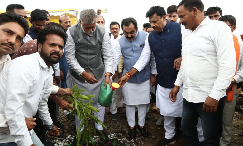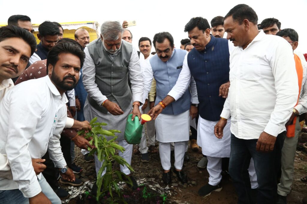 भोपाल: 06 जुलाई 2024 लोक निर्माण विभाग मंत्री श्री राकेश सिंह एवं पंचायत एवं ग्रामीण विकास मंत्री प्रहलाद सिंह पटेल ने आज 'एक पेड़ माँ के नाम' अभियान के तहत आदमपुर छावनी में वृहद् वृक्षारोपण कार्यक्रम में पौधारोपण किया।