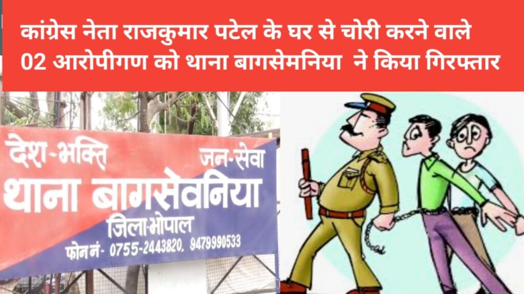 कांग्रेस नेता राजकुमार पटेल के घर से चोरी करने वाले 02 आरोपीगण को थाना बागसेमनिया ने किया गिरफ्तार