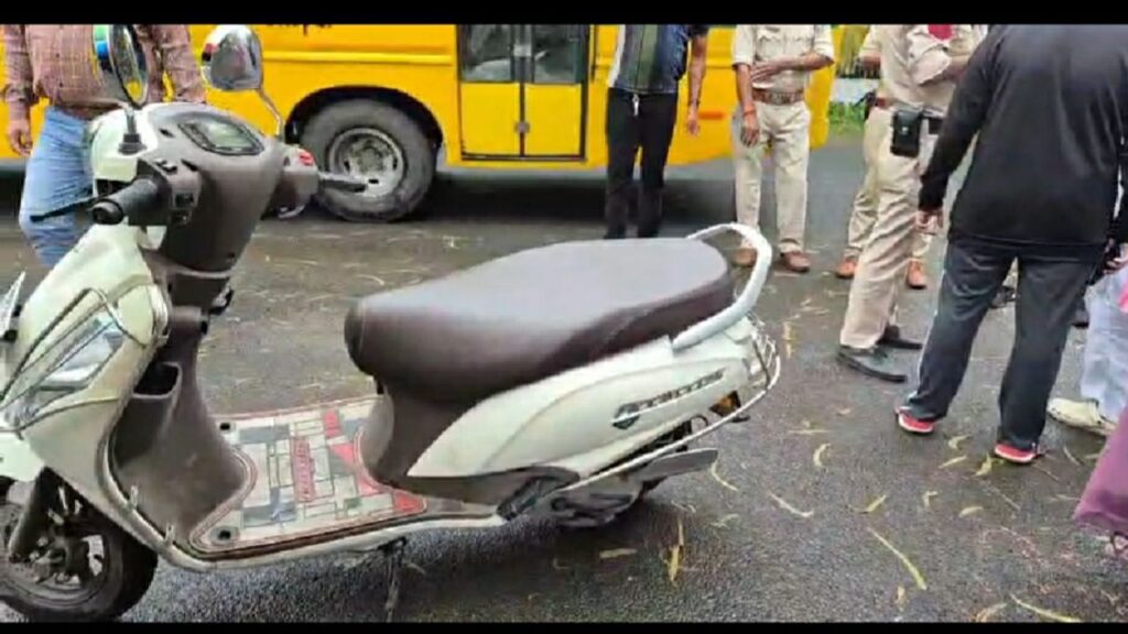 स्कूटी सवार युवक को पहले पीछे से बाइक सवार बदमाशों ने मारी टक्कर