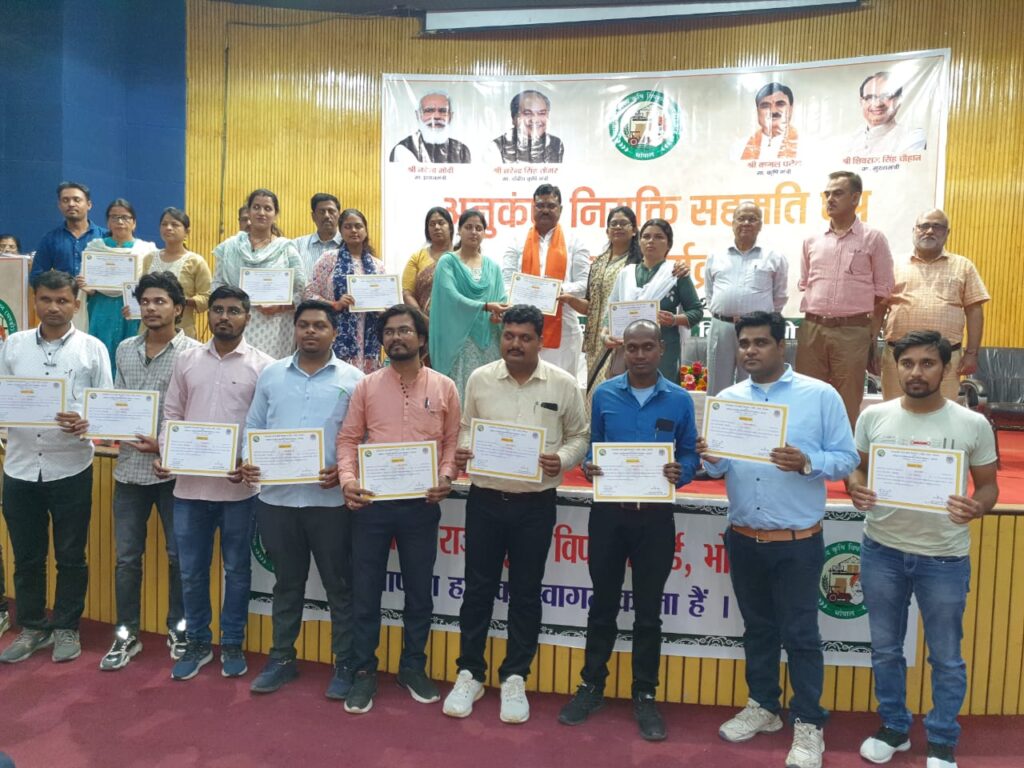 जिसमें सहायक ग्रेड-03 के 20 पदों तथा भृत्य/चौकीदार के 04 पदों पर अनुकंपा नियुक्ति पत्र प्रदान किये गये। अनुकम्पा नियुक्ति के इन लाभार्थियों के साथ-साथ माननीय मंत्री महोदय द्वारा अभी तक कुल 203 आश्रितों को अनुकम्पा नियुक्तियां प्रदान की जा चुकी है।
