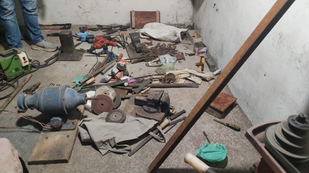 *जब्त माल का विवरण-* लेथ मशीनें, वेल्डिंग मशीनें, घिसाई व कटाई की मशीनें, ०१ देसी पिस्टल, 03 आधी बनी हुई देसी पिस्टल बैरल लोहे के फ्रेम, कारतूस, मैगजीन पिस्तौल की पत्ती दो जिंदा राउंड ब्लेंडर मोटर, लोहे की पाइप ब्लेंडर मशीन, ग्रील मशीन, वेल्डिंग मशीन, ड्रिल मशीन, बड़ी मिलिंग मशीन, छोटी बड़ी बट की लकड़ियाँ, लोहे के स्प्रिंग, स्लाइडर, घोड़ा ट्रिगर, इत्यादि एवं अन्य कलपुर्जे कच्चा सामान जप्त