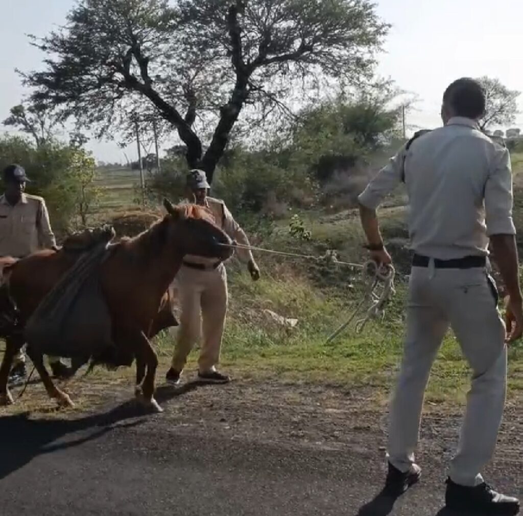 मुलताई( बैतूल) में अवैध कच्ची शराब की तस्करी कर रहा था घोड़ा ,वहीं टीआई प्रज्ञा शर्मा ने बताया कि रविवार को प्रभात पट्टन निवासी अंकुश बंजारे को घोड़े की पीठ पर बोरी में टायर ट्यूब में कच्ची शराब लाते हुए पकड़ा बोरी में 2 टायर ट्यूब में 60 लीटर कच्ची महुआ शराब भरी हुई थी शराब नाले किनारे बनाकर घर से ले जा रहा था