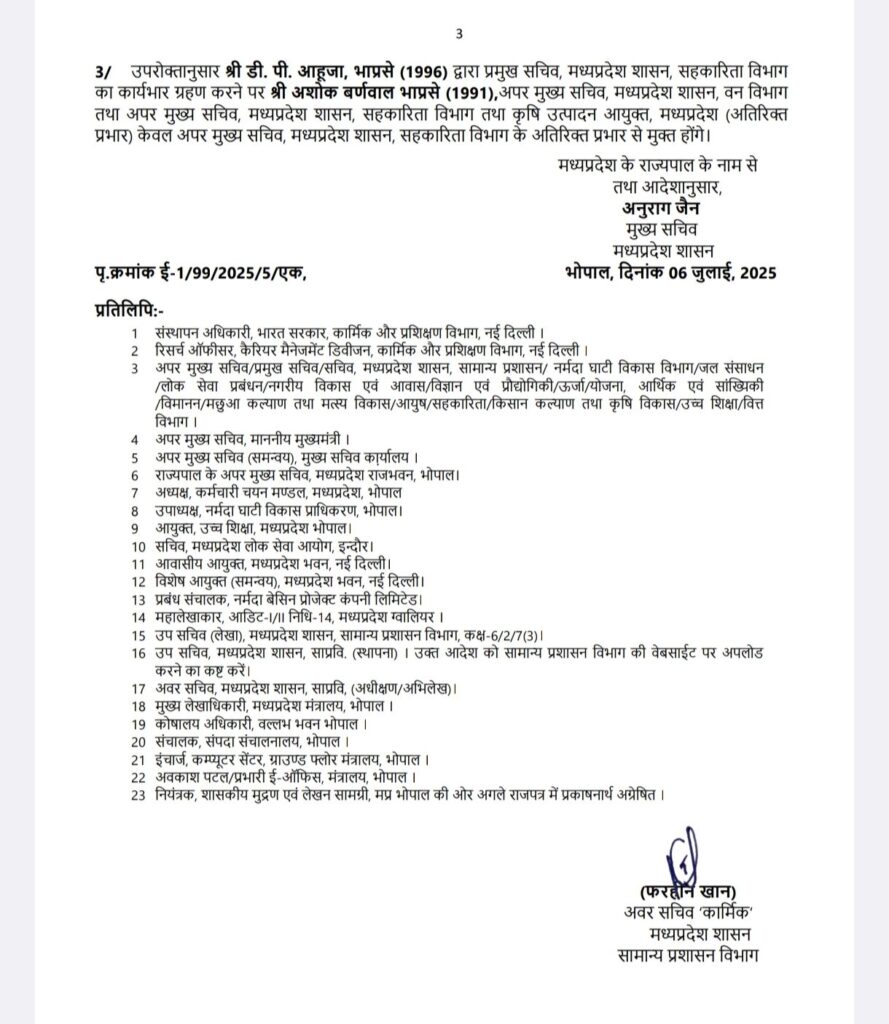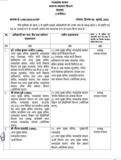मध्य प्रदेश में एक बार फिर राज्य में उच्च स्तर पर परिवर्तन किया गया है (IAS)आईएएस अधिकारियों की नई पदस्थापना के आदेश जारी देखे जिसमें हम आपको बता दें कि नीरज मंडलोई को मुख्यमंत्री का अपर मुख्य सचिव बनाया गया है