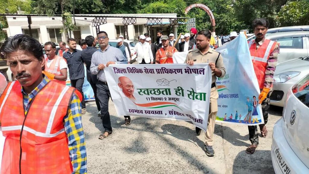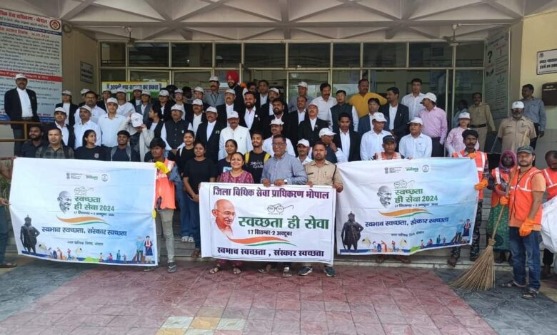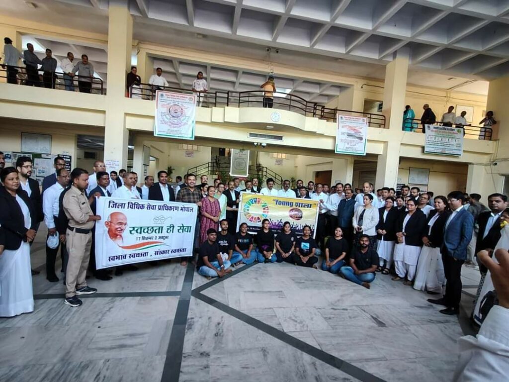 इस मोके पर प्रधान जिला एवं सत्र न्यायाधीश, श्री राजर्षि श्रीवास्तव, विशेष न्यायाधीश, भोपाल, श्रीमती आरती शर्मा सचिव जिला विधिक सेवा प्राधिकरण, श्री दीपक खरे, अध्यक्ष अभिभाषक संघ सहित समस्त न्यायिक अधिकारीगण, कर्मचारीगण, नगर निगम के अधिकारी एवं कर्मचारी उपस्थित रहे। इस अवसर पर सामाजिक संस्था यंगशाला भोपाल की टीम द्वारा स्वच्छता विषयक नुक्कड़ नाटक प्रस्तुत किया गया, जिसे उपस्थित समस्त न्यायिक अधिकारियों सहित उपस्थितों द्वारा सराहा गया। कार्यक्रम के दौरान जिला न्यायालय परिसर में स्वच्छता का संदेश के उददेश्य से सांकेतिक रैली निकाली गई। 29 सितंबर 2024 को जजेस कॉलोनी भोपाल में भी नगर निगम के समन्वय से स्वच्छता शिविर का आयोजन किया गया था। कार्यक्रम के दौरान प्रधान जिला एवं सत्र न्यायाधीश ने व्यक्त किया कि स्वच्छता को हमें अपनी आदत बनाना होगा, स्वच्छता हमें अपने स्वभाव में लानी होगी तभी स्वच्छ घर, स्वच्छ कार्यालय, स्वच्छ भारत का स्वपन साकार होगा। यदि हमारे आस-पास स्वच्छता है और प्रकृति संरक्षित है तो हम स्वस्थ अपने आप रहेंगे। *02 अक्टूबर 2024 को गांधी जयंती के अवसर पर ग्राम कुराना भोपाल में होगा पंचायत आपके द्वार शिविर का आयोजन* मध्यप्रदेश राज्य विधिक सेवा प्राधिकरण के निर्देशानुसार ग्राम स्तर पर विवादों का त्वरित एवं सुलभ निराकरण किए जाने के उद्देश्य से श्रीमान अमिताभ मिश्र प्रधान जिला एवं सत्र न्यायाधीश महोदय की उपस्थिति में पंचायत आपके द्वार योजना अंतर्गत 02 अक्टूबर 2024 को प्रातः 11:00 बजे ग्राम कुराना अंतर्गत पुलिस थाना परवलिया सड़क भोपाल में पंचायत आपके द्वार सह मोबाईल लोक अदालत एवं जागरूकता शिविर का आयोजन किया जाकर उक्त ग्राम एवं पुलिस थाना अंतर्गत तथा आस-पास के ग्रामों के राजस्व न्यायालयों में लंबित प्रकरणों एवं समस्याओं के निराकरण एवं आमजन एवं हितग्राहियों को लाभांवित किया जाएगा। साथ ही शिविर में पीपुल्स मेडीकल कॉलेज के समन्वय से स्वास्थ्य परीक्षण शिविर का आयोजन भी किया जाएगा। शिविर में राजस्व अधिकारी अपनी टीम के साथ उपस्थित होकर राजस्व प्रकरणों का भी निराकरण करेंगे। सचिव, जिला विधिक सेवा प्राधिकरण भोपाल ने ग्राम वासियों एवं आरा-पास के ग्रामवासियों से अपील की है कि उक्त शिविर में उपस्थित होकर कानूनी जानकारी का लाभ लेवें तथा अपनी समस्याओं का निराकरण कराये।