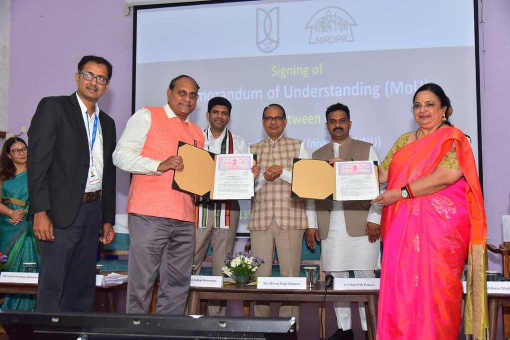 शिवराज सिंह ने हैदराबाद स्थित राष्ट्रीय ग्रामीण विकास एवं पंचायती राज संस्थान में ग्राम रोजगार सेवक (GRS) के लिए विकसित ऑनलाइन ई-प्रशिक्षण पाठ्यक्रम का शुभारंभ किया।