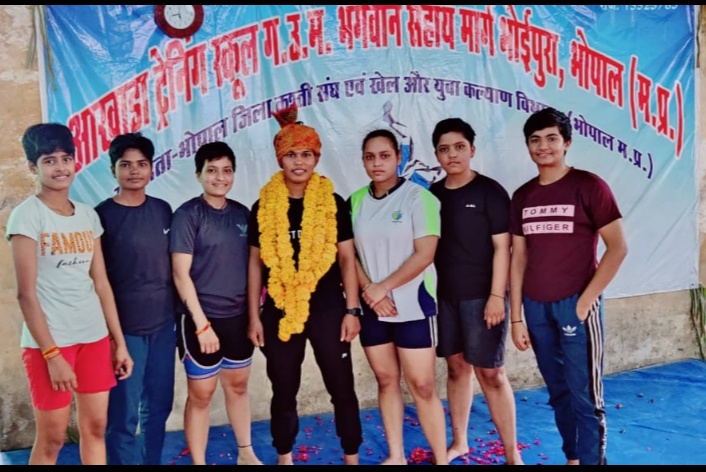 भोइपुरा स्थित अखाड़ा ट्रेनिंग स्कूल भोपाल मैं विगत 1-मई से चल रहे कुश्ती के समर कैंप मैं बालक-बालिका पहलवानों को अपना आशीर्वाद देने अखाड़ा ट्रेनिंग स्कूल की अनेकोंबार की राष्ट्रीय पदक विजेता अंतर्राष्ट्रीय पहलवान गेसू रहंगडाले B.S.F. में जॉब लगने के उपरांत वहां कि ट्रेनिंग पूरी करने के पश्चात भोपाल पहली बारआने पर अपने कुश्ती सेंटर अखाड़ा ट्रेनिंग स्कूल ग.उ.म. में (समर कैंप के बच्चों को आशीर्वाद देने पहुंचिं)
