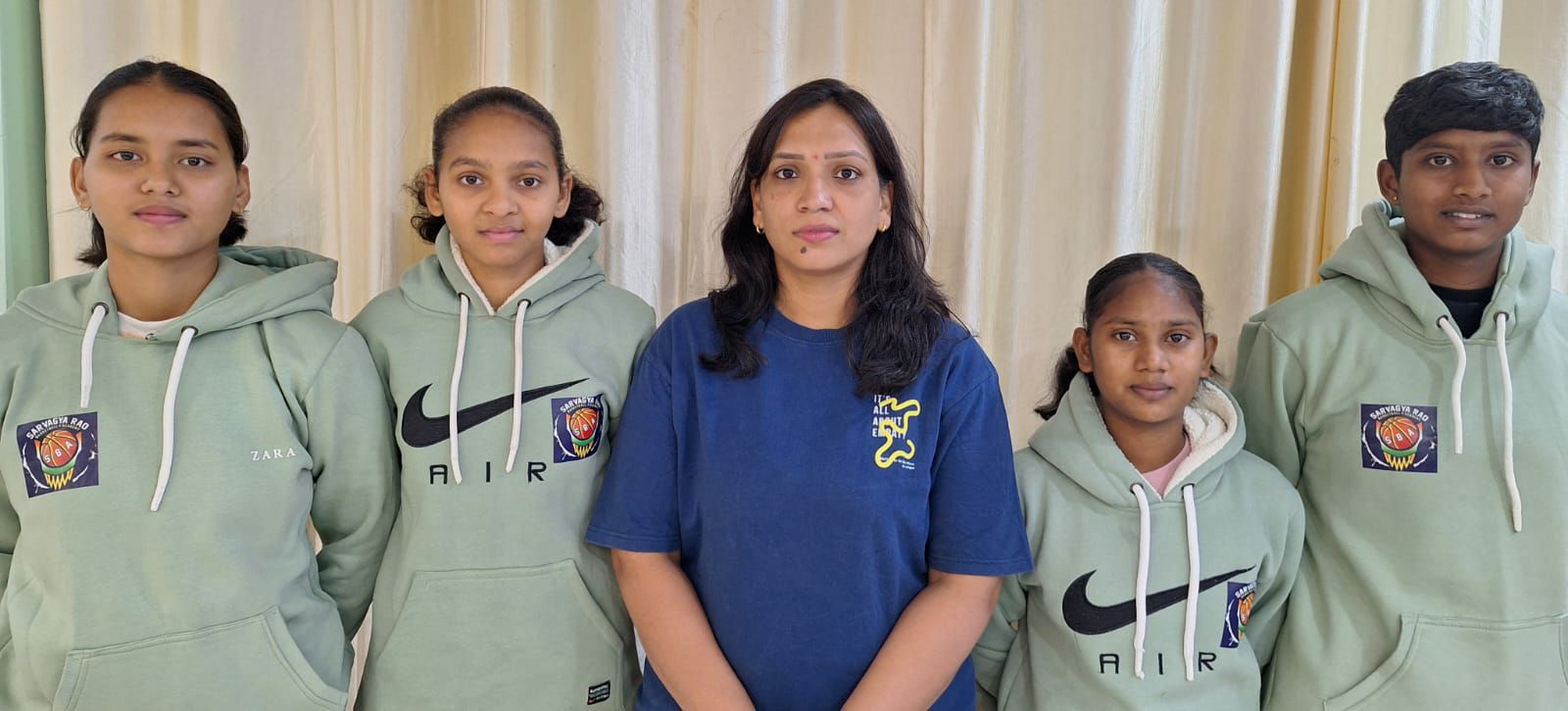 बास्केटबाॅल टीम :- रूमी कोनवर, आर्या विजय अवारे, नंदिनी माधो प्रधान, भावना बैरवा है।