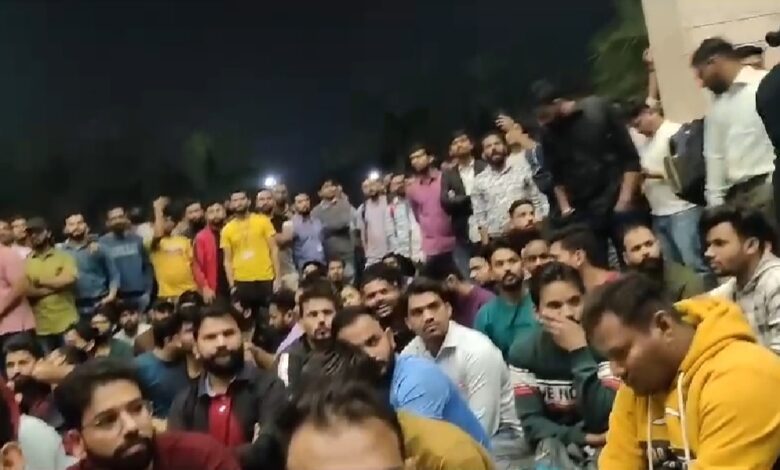 एम्स की मुख्य बिल्डिंग के सामने पिछले 4 घंटे से नारेबाजी करते हुए प्रदर्शन का रहा नर्सिंग स्टाफ