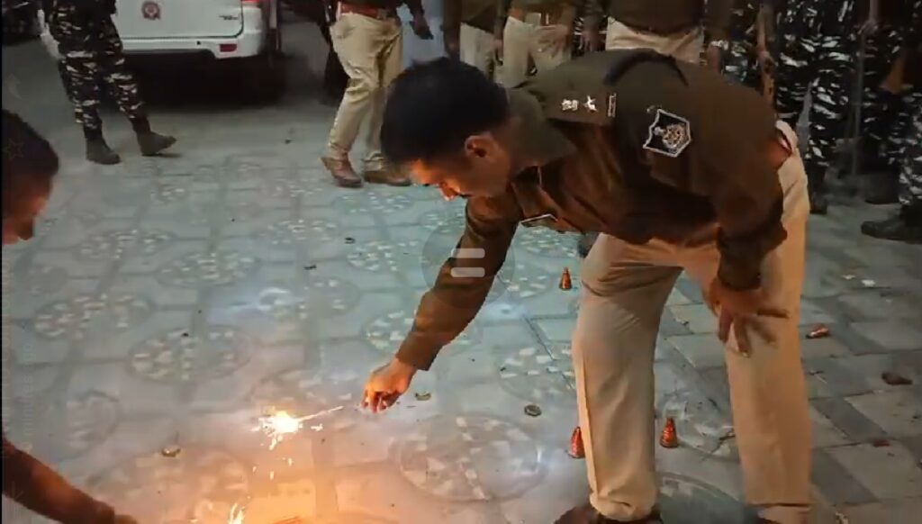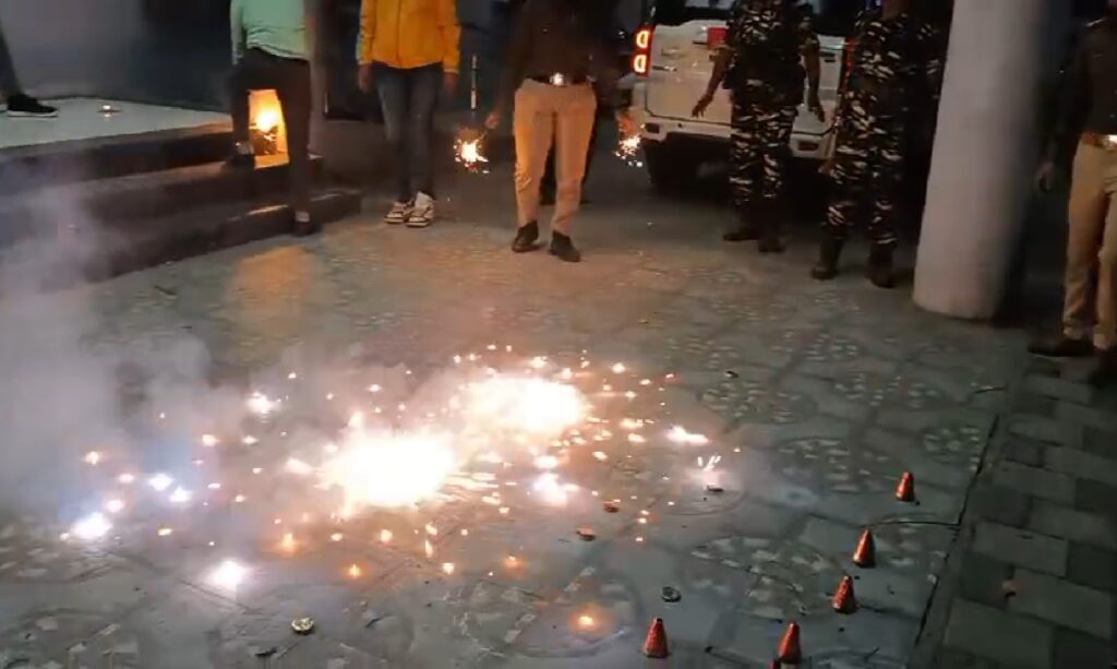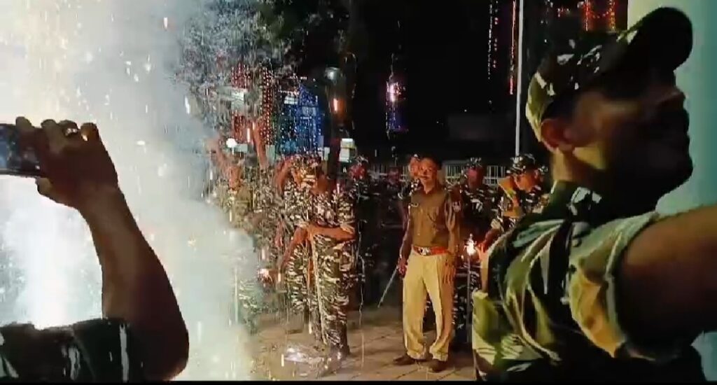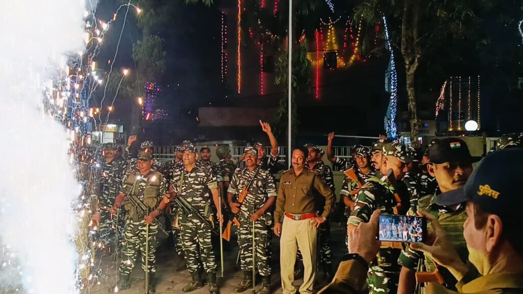 पश्चिम बंगाल से आए सीआरपीएफ जवानों के साथ भोपाल पुलिस ने फ्लैग मार्च उपरांत दिवाली मनाई