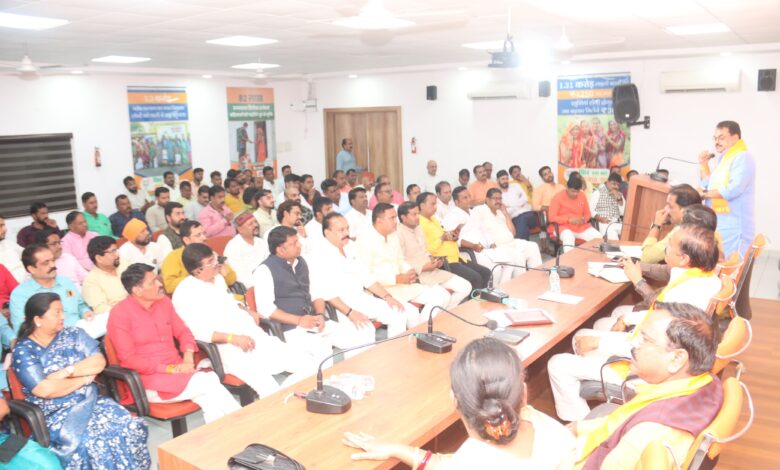 भोपाल। भारतीय जनता पार्टी प्रदेश कार्यालय में आगामी तिरंगा यात्रा एवं विभाजन विभीषिका दिवस के आयोजन के लिए जिला पदाधिकारियों की बैठक आयोजित की गयी। बैठक को भोपाल जिलाध्यक्ष श्री रविन्द्र यति एवं जिला संगठन प्रभारी श्री महेंद्र सिंह यादव ने संबोधित किया।