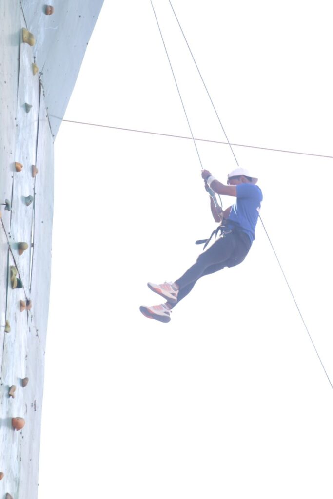 बरकतउल्ला विश्वविद्यालय शारीरिक शिक्षा विभाग साहसिक गतिविधि प्रकोष्ठ द्वारा छात्र-छात्राओं में साहस की भावना बढ़ाने के उद्देश्य से विश्वविद्यालय स्थित खेल प्रशाल स्थित क्लाइंबिंग वॉल परिसर तीन दिवसीय साहसिक गतिविधि प्रशिक्षण शिविर का आयोजन किया जा रहा है
