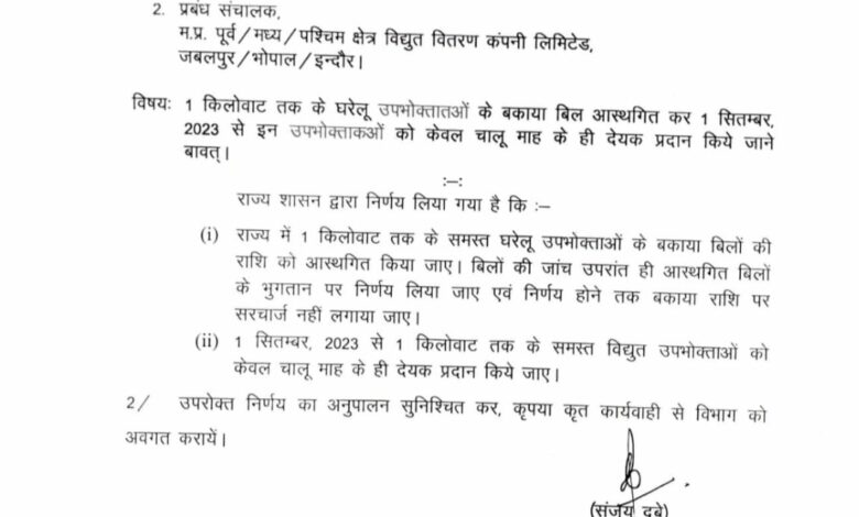 1 किलोवाट तक के सभी घरेलू उपभोक्ताओं के बकाया बिल माफ किये गए। शासन ने जारी किये आदेश