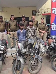 थाना कोतवाली पुलिस ने विभिन्न स्थानों से 06 मोटरसाइकिल चोरी करने वाले 02 आरोपियों को गिरफ्तार कर चोरी के वाहन बरामद किए है।