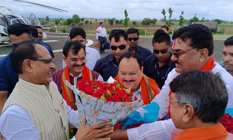 भाजपा के राष्ट्रीय अध्यक्ष नड्डा पहुंचे खरगोन कृषि मंत्री कमल पटेल ने किया उनका वेलकम..