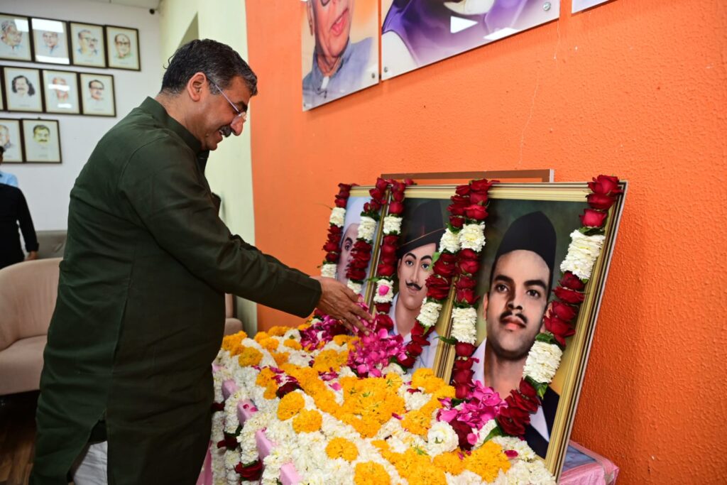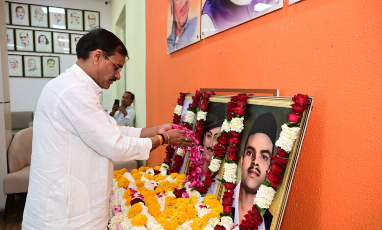 भारतीय जनता पार्टी, प्रदेश कार्यालय में शहीद दिवस के अवसर पर महान स्वतंत्रता संग्राम सेनानी भगत सिंह, राजगुरु और सुखदेव के चित्र पर माल्यार्पण कर श्रद्धांसुमन अर्पित किये।