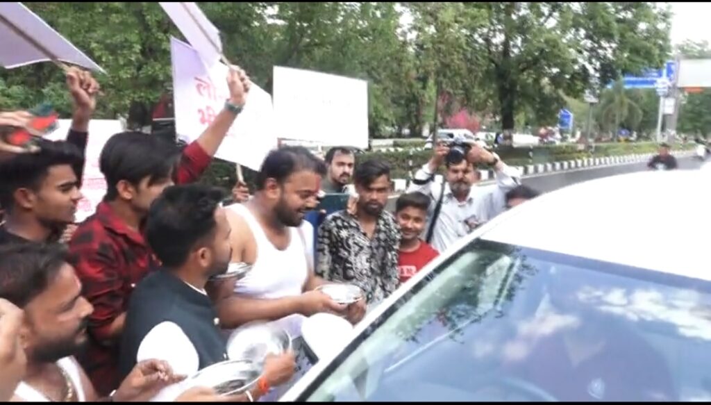 भीख मांग कर किया अनोखा प्रदर्शन किया, युवाओं कीअनदेखी की सरकार ने युवा नीति के विरोध