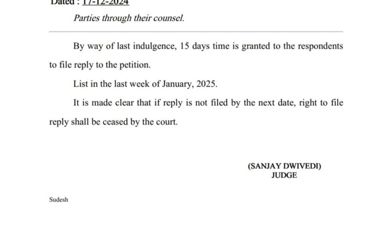भोज मुक्त विश्वविद्यालय,उच्च न्यायलय जबलपुर के प्रकरण क्रमांक 6665/2024 में नोटिस जारी होने के उपरांत भी जवाबदावा जानबूझकर प्रस्तुत नहीं कर रहा