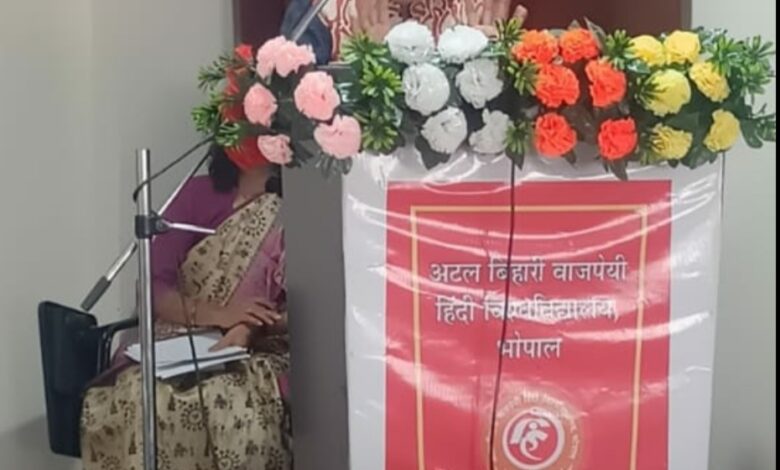 अटल बिहारी वाजपेयी हिंदी विश्वविद्यालय भोपाल एवं केंद्रीय हिंदी निदेशालय नई दिल्ली के संयुक्त तत्वाधान में आयोजित तीन दिवसीय राष्ट्रीय संगोष्ठी के तृतीय दिवस तीन तकनीकी सत्रों का आयोजन किया गया। जिसमें मुख्यतः आमंत्रित विशेषज्ञों ने अपनी बात रखी तथा विभिन्न विद्वत जनों ने अपने शोध पत्र प्रस्तुत किये । आज संगोष्ठी के अंतिम दिवस तीन तकनीकी सत्र आयोजित किए गये तथा अंतिम सत्र समापन सत्र रहा। समापन सत्र के अध्यक्ष कुलपति प्रो. खेमसिंह डहेरिया रहे। विशिष्ट अतिथि के रूप में प्रो. के. जी. सुरेश, कुलपति माखनलाल चतुर्वेदी विश्वविद्यालय, भोपाल, प्रोफेसर सुरेश जैन, कुलपति बरकतुल्लाह विश्वविद्यालय, डॉ विकास दवे, निदेशक मध्य प्रदेश साहित्य अकादमी, भोपाल एवं डॉ अनुपम माथुर सहनिर्देशिका केंद्रीय हिंदी निदेशालय रहे। मध्य प्रदेश साहित्य ग्रंथ अकादमी और विश्वविद्यालय के बीच एक पारस्परिक समझौता पर हस्ताक्षर हुए। समापन सत्र में स्वागत भाषण एवं विषय की प्रस्तावना विश्वविद्यालय के कुल सचिव श्री शैलेंद्र जैन जी द्वारा दी गई। विगत तीन दिवस से चल रहे इस संगोष्ठी का प्रतिवेदन प्रोफेसर राजीव वर्मा संकाय अध्यक्ष, समाज विज्ञान संकाय ने प्रस्तुत किया।