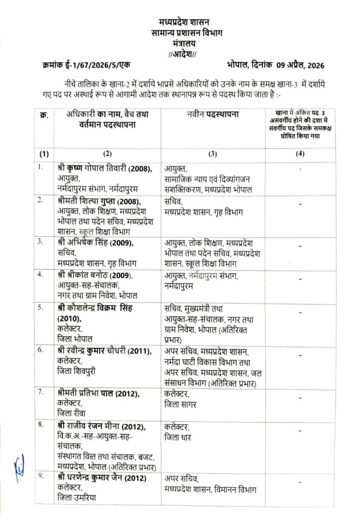 आईएएस ट्रांसफर के जिलों के कलेक्टर बदले भोपाल कलेक्टर बने प्रियंक मिश्रा