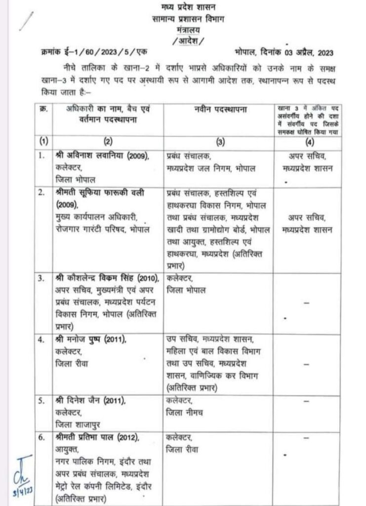 भोपाल के नए कलेक्टर कौशलेंद्र वैकेंसी नौकरी में हम आपको बता दें कि वर्तमान कलेक्टर अविनाश लवानिया को प्रबंध संचालक मध्य प्रदेश जल निगम की जिम्मेदारी सौंपी गई है और 7 अन्य जिलो कलेक्टरों को भी बदला गया है देखें लिस्ट