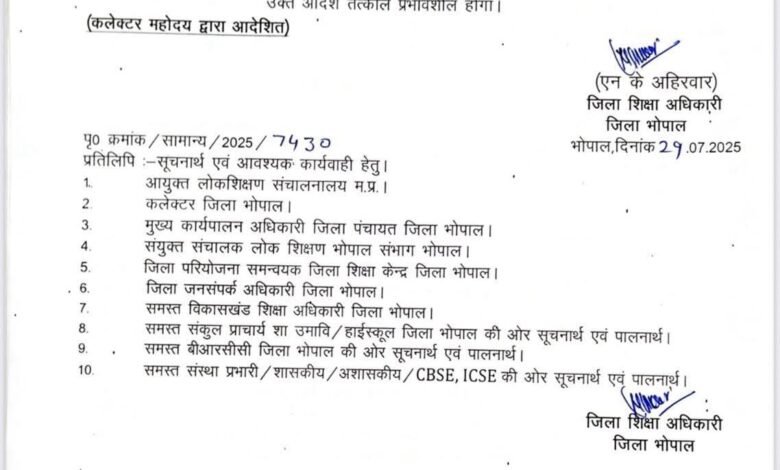 भोपाल में बुधवार को स्कूलों की छुट्टी,