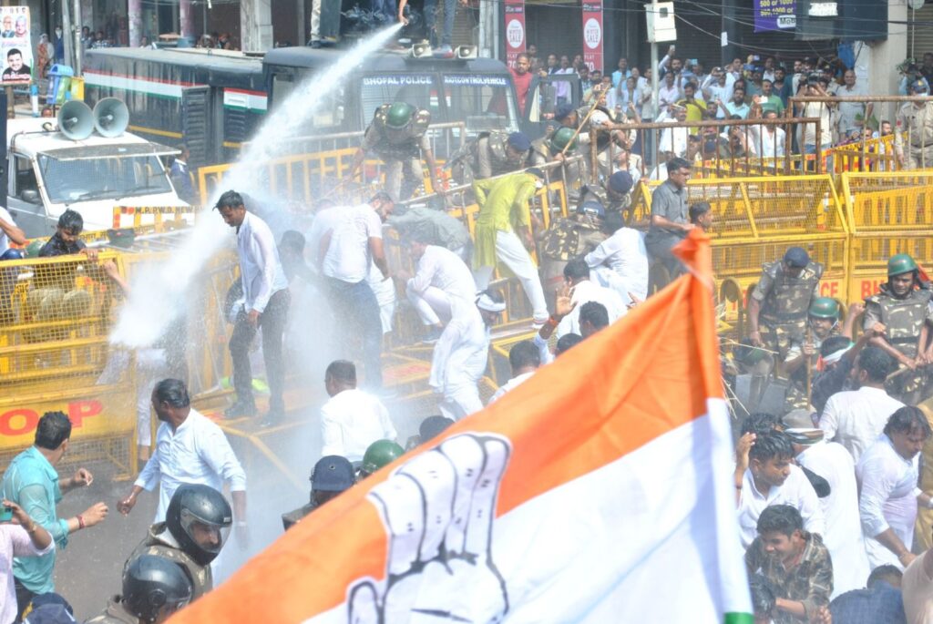 भोपाल में शक्ति प्रदर्शन कांग्रेस का, कार्यकर्ताओं ने राजभवन का घेराव करने की कोशिश।