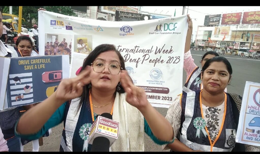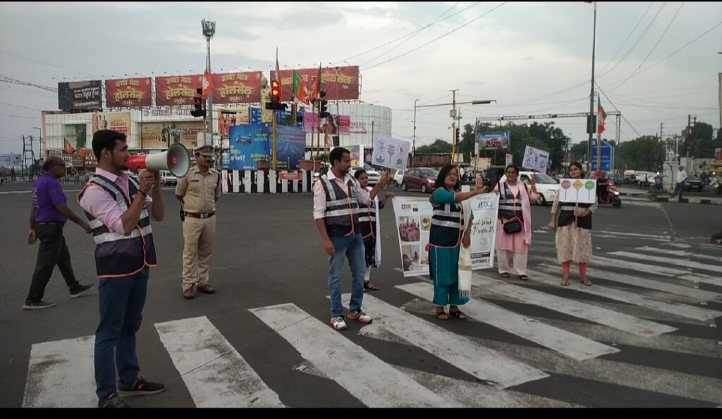 मूक बधिर वर्ग के लोगों के द्वारा ट्रैफिक पुलिस की उपस्थिति में sign language के माध्यम से रोशनपुरा चौराहे पर ट्रेफिक अवेयरनेस के बारे में बताया