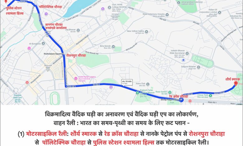 मुख्यमंत्री निवास में ‘‘ भारत का समय -पृथ्वी का समय विक्रमादित्य वैदिक घड़ी का लोकापर्ण एवं युवा संवाद कार्यक्रम’’ का आयोजन किया जा रहा है।परिवर्तित मार्ग रहेगा