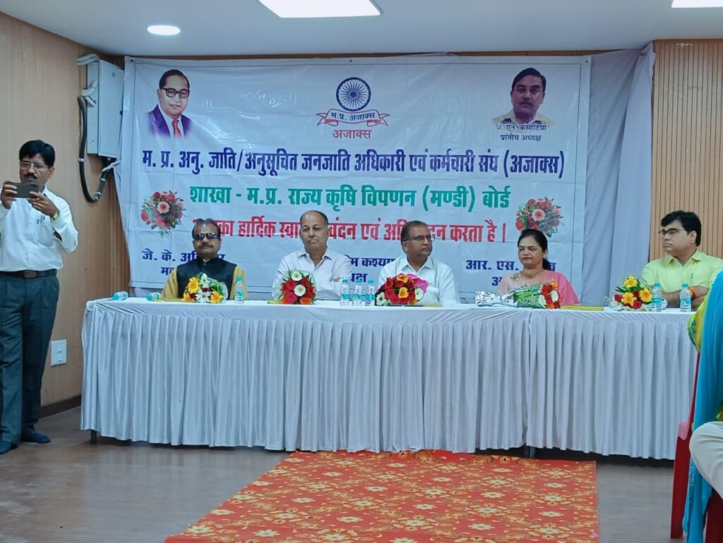 आज दिनांक 16 अप्रैल 2025 को मध्यप्रदेश राज्य कृषि विपणन बोर्ड मुख्यालय भोपाल में सभी अधिकारियों एवं कर्मचारियों के सहयोग से भारतरत्न बोधिसत्व बाबा साहब भीमराव अंबेडकर जी की 134वीं जयंती के उपलक्ष्य में बाबा साहब जी के जन्मोत्सव कार्यक्रम का भव्य आयोजन किया गया, उपरोक्त जानकारी देते हुए हैं प्रदेश अध्यक्ष एवं संयुक्त मोर्चा के सदस्य ठाकुर संतोष सिंह दीक्षित ने बताया कि जिसमें मंडी बोर्ड के अपर संचालक आदरणीय श्री आर आर अहिरवारजी, संयुक्त संचालक सुश्री संगीता ढोके जी, उपसंचालक श्री प्रवीण वर्मा जी, श्रीमति रश्मि कश्यप जी, मंडी बोर्ड कर्मचारी संयुक्त मोर्चा के संयोजक आदरणीय श्री बी बी फौजदार जी, अजाक्स प्रदेश महा सचिव श्री गौतम पाटिल जी, जिलाध्यक्ष आदरणीय श्रीबंशीलाल धनबालजी, मंडी बोर्ड अजाक्स शाखा अध्यक्ष श्री नैन सिंह सोलंकी जी, मंडी कर्मचारी संघ अध्यक्ष श्री अंगिरा पांडे जी, श्री दीपक गुप्ता जी, कार्यपालन यंत्री,