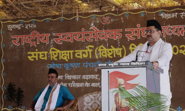 विदिशा में उद्घाटन सत्र को संबोधित करते हुए प्रान्त प्रचारक श्री विमल गुप्ता ने कहा कि हिंदू जीवन चार आश्रमों पर आधारित है। जिनमे चौथा आश्रम संन्यास आश्रम है, जो व्यक्ति को मोक्ष की राह पर ले जाता हैं। वर्ग में आए हुए हम सभी साधक हैं और अपनी साधना को सफल करने के लिए इस वर्ग में उपस्थित हुए हैं। उन्होंने कहा कि साधना कठिनता से सफल होती हैं। जो कठिनाइयों में जी नहीं सकता, वह कभी साधक नहीं बन सकता है। उन्होंने कहा कि हमें अपने जीवन में देशभक्ति, वैराग्य हमेशा बनाकर रखना चाहिए। समाज में शाखा की भूमिका जागरण श्रेणी के माध्यम से स्पष्ट हो सके और शाखा समाज परिवर्तन का केंद्र बन सके इसलिए हम वर्ग में प्रशिक्षण लेने आए हैं। उन्होंने कहा कि वर्ग में स्वयंसेवकों को शाखा की सामाजिक भूमिका की संकल्पना की स्पष्टता, व्यवस्थापन का मूल तत्व (समय, व्यक्ति और कार्य ) का प्रबंधन और संगठन की रीति-नीति का परिचय मिलेगा।