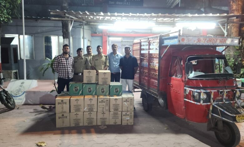 अवैध शराब तस्कर को गिरफ्तार कर 492 लीटर अवैध अग्रेजी शराब मय लोडिंग आटो के किया जप्त आगामी लोकसभा चुनाव के मद्देनजर भोपाल शहर में सम्पत्ति संबंधी आपराधो तथा अवैध शराब बेचने वालो पर नियंत्रण रखने हेतु मुखबिर तंत्र विकसित कर शत प्रतिशत बरामदगी सुनिश्चित करने पुलिस आयुक्त नगरीय भोपाल श्री हरिनारायणाचारी मिश्र, अतिरिक्त पुलिस आयुक्त भोपाल श्री अवधेश गोस्वामी द्वारा निर्देशित किया गया है।