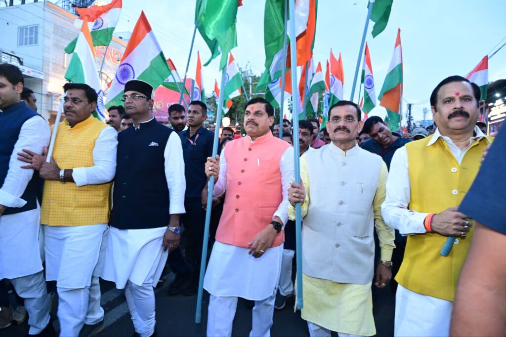 मुख्यमंत्री डॉ. मोहन यादव, भाजपा प्रदेश अध्यक्ष व सांसद श्री विष्णुदत्त शर्मा, प्रदेश प्रभारी डॉ. महेन्द्र सिंह सहित सभी समाज के धर्मगुरूओं, सामाजिक व व्यापारिक संगठनों के साथ शहर के गणमान्य व्यक्तियों, महिलाओं, युवाओं, पूर्व सैनिकों के साथ हजारों की संख्या में आम जनता अपने हाथ में तिरंगा लेकर देशभक्ति के नारों के साथ तिरंगा यात्रा में शामिल हुए।