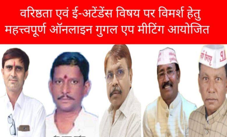 वरिष्ठता एवं ई-अटेंडेंस विषय पर विमर्श हेतु महत्त्वपूर्ण ऑनलाइन गुगल एप मीटिंग आयोजित, 14 को ज्ञापन