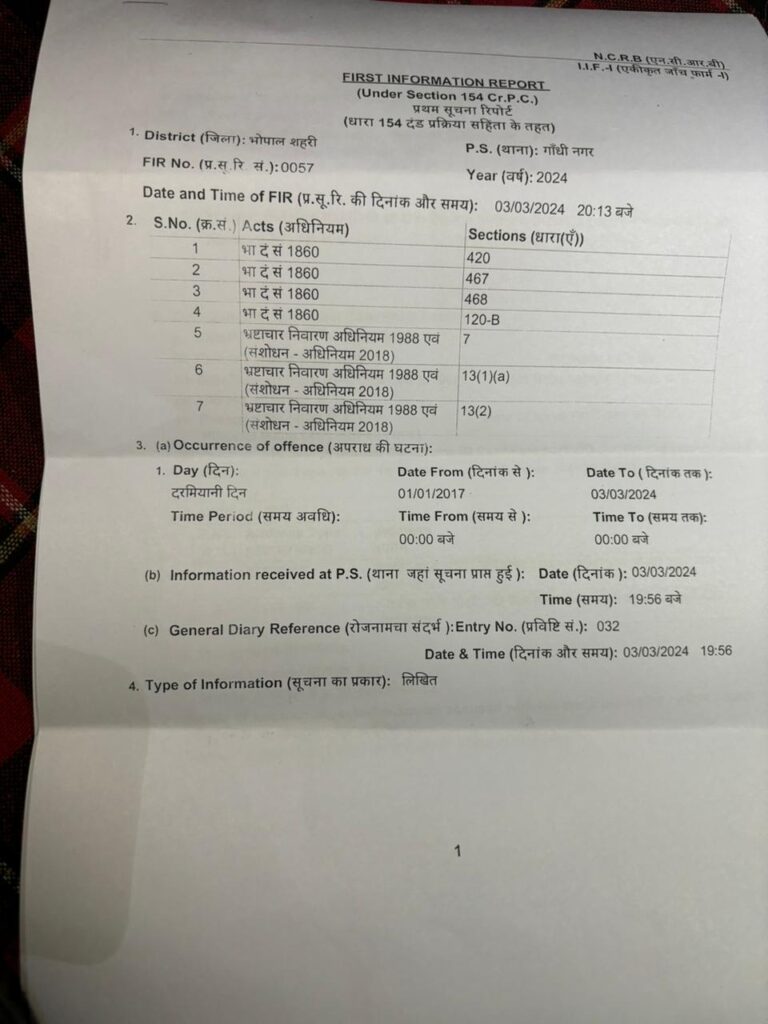 IPC की धारा 420 467,68 के तहत मुकदमा दर्ज कर लिया गया है