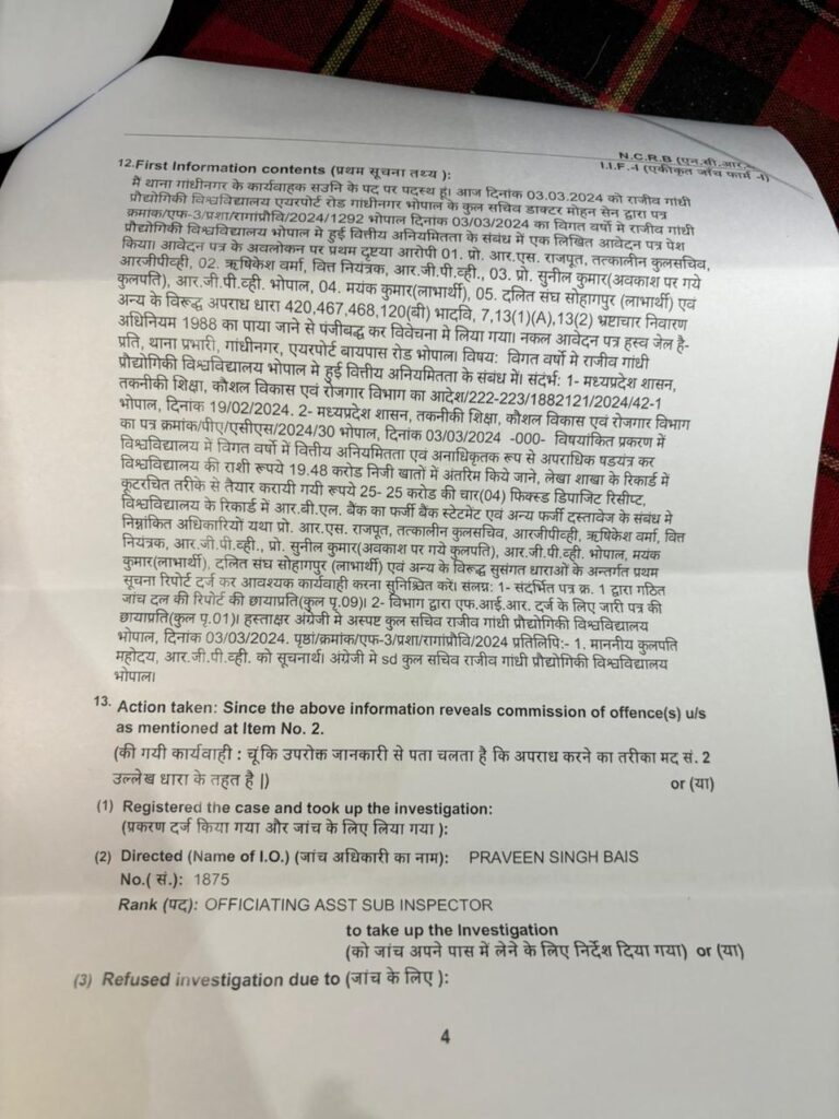 ब्रेकिंग न्यूज़ राजीव गांधी प्रौद्योगिकी विश्वविद्यालय में 200 करोड रुपए के हुए घोटाले की आज गांधीनगर पुलिस ने FIR दर्ज कर ली गई है
