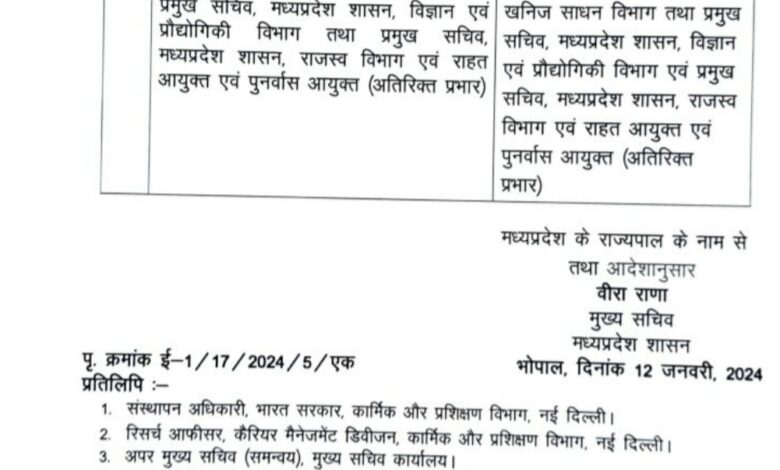 सरकार ने भारतीय प्रशासनिक सेवा में 1998 बैच के IAS अधिकारी निकुंज कुमार श्रीवास्तव को प्रमुख सचिव खनिज साधन विभाग पदस्थ किया है। उनके पास वर्तमान दायित्वों, प्रमुख सचिव विज्ञान एवं प्रौद्योगिकी विभाग, प्रमुख सचिव राजस्व विभाग और राहत और पुनर्वास आयुक्त का अतिरिक्त प्रभार रहेगा।