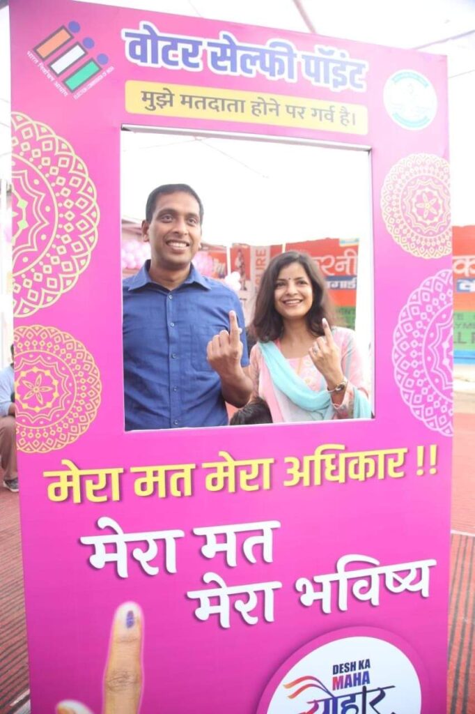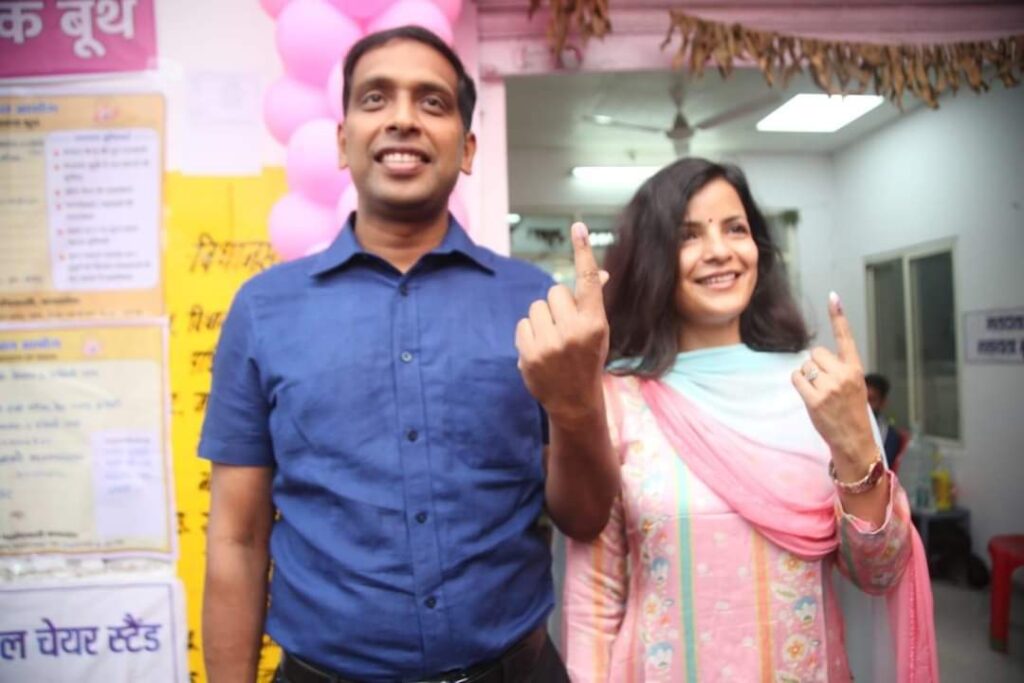 कलेक्टर एवम् जिला निर्वाचन अधिकारी भोपाल आशीष सिंह अपनी धर्मपत्नी श्रीमती कथा कार्तिकी आशीष सिंह के साथ आज भोपाल के चार इमली स्थित मतदान केंद्र में मतदान किया।