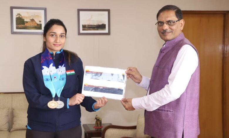 डीजीपी ने वर्ल्ड पुलिस एंड फायर गेम्स में स्वर्ण पदक विजेता महिला आरक्षक को दी बधाईभोपाल, 09 अगस्त 2023। डीजीपी…