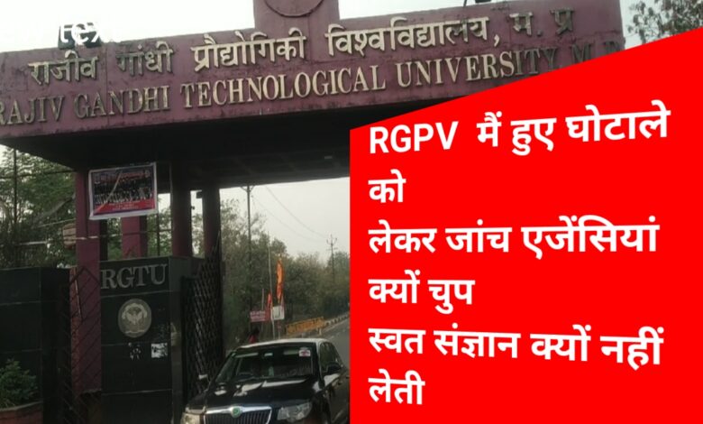 राजीव गांधी प्रौद्योगिकी विश्वविद्यालय (RGPV)में जो घोटाले हुए हैं उसकी जांच एक जांच कमेटी कर रही ,हमारे सूत्रों से मिली जानकारी के अनुसार जांच कमेटी कुछ वर्षों का ही हिसाब किताब खंगाल रही है