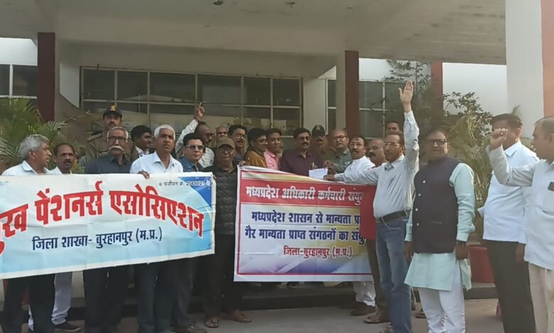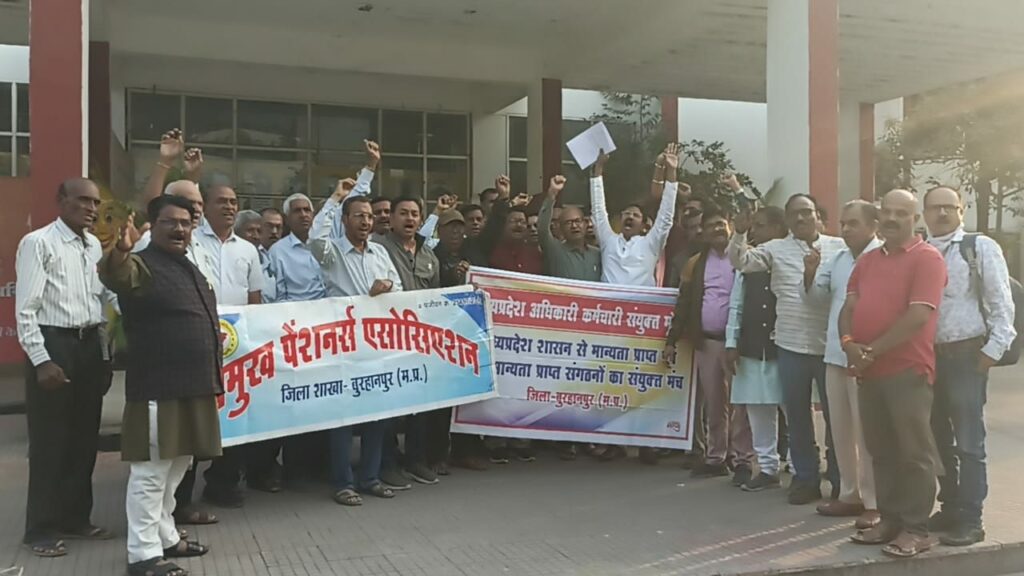 मध्य प्रदेश/ अधिकारी कर्मचारी संयुक्त मोर्चा बुरहानपुर में शुक्रवार को जिला मुख्यालय में 51 सूत्रीय मांगे पूरी करने के लिए ज्ञापन दिया उपरोक्त जानकारी देते हुए कर्मचारी महासंघ के प्रदेश अध्यक्ष, नेशनल मूवमेंट ऑफ ओल्ड पेंशन स्कीम के प्रांतीय संयोजक एवं संयुक्त मोर्चा के प्रदेश उपाध्यक्ष ठाकुर संतोष सिंह दीक्षित ने बताया कि मोर्चा की प्रमुख मांगों में प्रदेश के 3:25 लाख शिक्षक को की 20 वर्ष की वरिष्ठता प्रदान की जाए एवं 2005 से बंद पुरानी पेंशन वरिष्ठता से लागू करते हुए सेवानिवृत्ति की अंतिम महीने का आधा वेतन महंगाई भत्ते सहित मिले इसके अलावा अन्य मांगों में 2016 से बंद पदोन्नति को बहाल करना, विभाग अध्यक्ष और अधीनस्थ लिपिको को