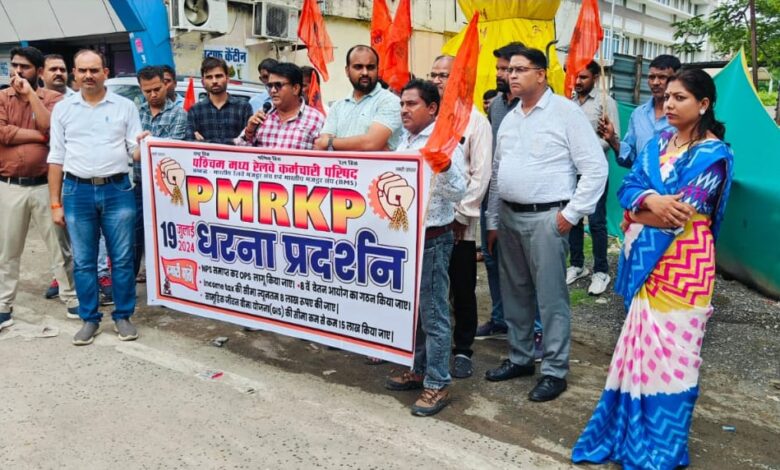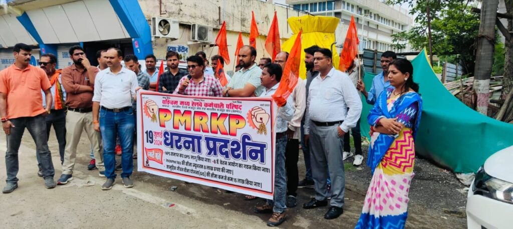भारतीय मजदूर संघ व भारतीय रेलवे मजदूर संघ से संबंध पश्चिम मध्य रेलवे में पश्चिम मध्य रेलवे कर्मचारी परिषद द्वारा निम्लिखित मांगो को लेकर मंडल रेल प्रबंधक कार्यालय पर धरना प्रदर्शन किया गया ।