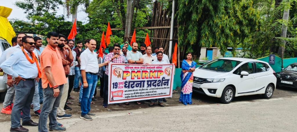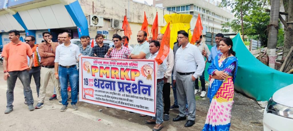भारतीय मजदूर संघ व भारतीय रेलवे मजदूर संघ और मध्य रेलवे कर्मचारी परिषद द्वारा अपनी मांगो को लेकर मंडल रेल प्रबंधक कार्यालय पर धरना प्रदर्शन