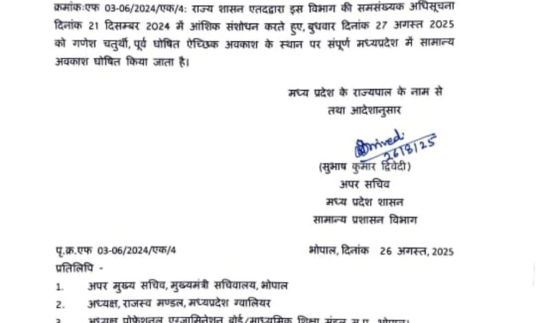 गणेश चतुर्थी पर पूरे प्रदेश में छुट्टी घोषित