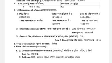 राजधानी भोपाल के कटारा थाने में दो किसानों के खिलाफ दर्ज हुआ धोखाधड़ी का मामला बिल्डर से ज्वाइंट वेंचर एग्रीमेंट…