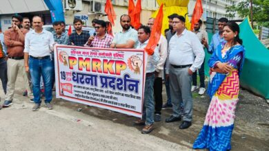 भारतीय मजदूर संघ व भारतीय रेलवे मजदूर संघ और मध्य रेलवे कर्मचारी परिषद द्वारा अपनी मांगो को लेकर मंडल रेल प्रबंधक कार्यालय पर धरना प्रदर्शन